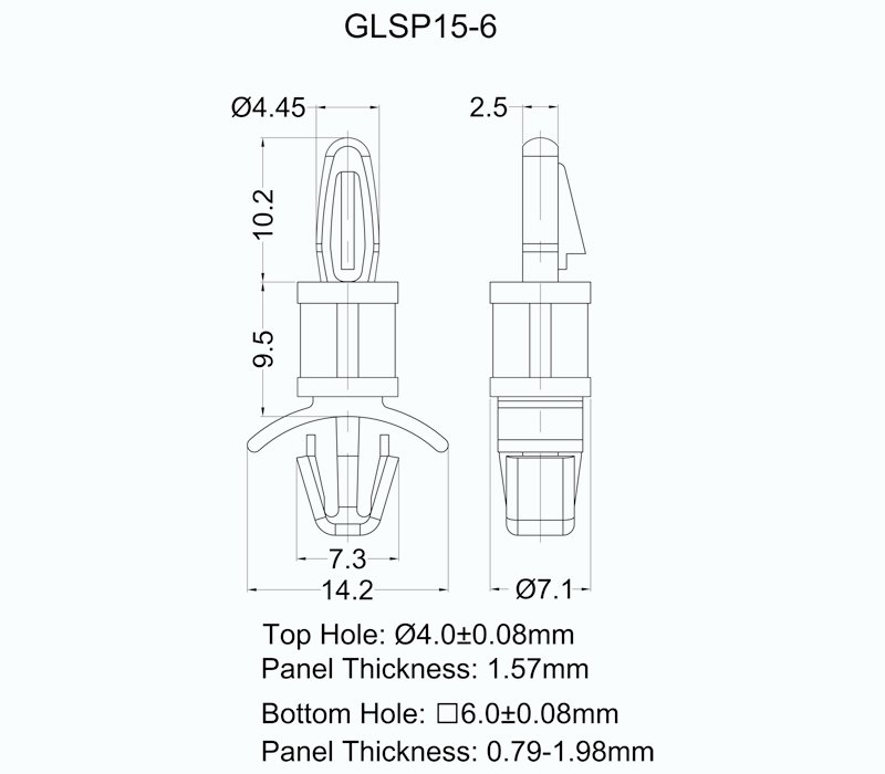 | 42617 | GLSP15-6-66 | PA66 UL94V2 | Tự nhiên | 6.0 +/- 0.08 | 4.0 +/- 0.08 | 0,79-1,98 | 1,57 | 1000 |