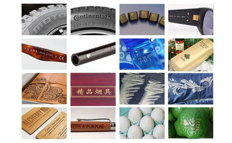 máy được sử dụng rộng rãi trong da, thực phẩm, đồ dùng, vải, điện tử, đồng hồ đo, dụng cụ truyền thông, bao bì và các ngành công nghiệp khác, có thể được kết hợp với tính hợp lý để đánh dấu trực tuyến.